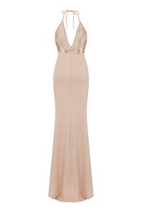 MAXI DRESS SEQUIN CHOCKER SLINKY BACKLESS THIGH SLIT FISHTAIL